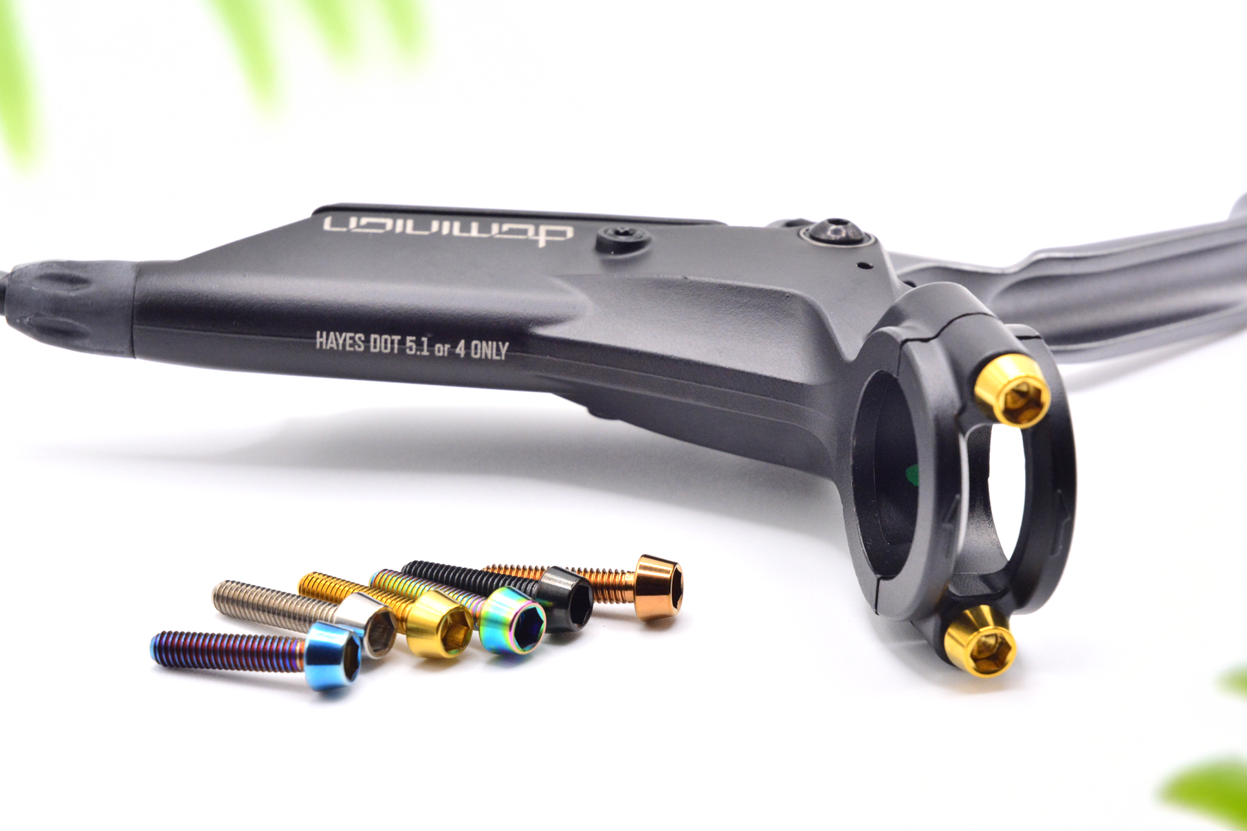 We get it, you want a lot of power on your brakes, why not get also the best hardware for them? This kit includes 4 titanium bolts for your Hayes Dominion brake levers. Lighter, stronger, and rust free. Available in 6 colors. Get yours!